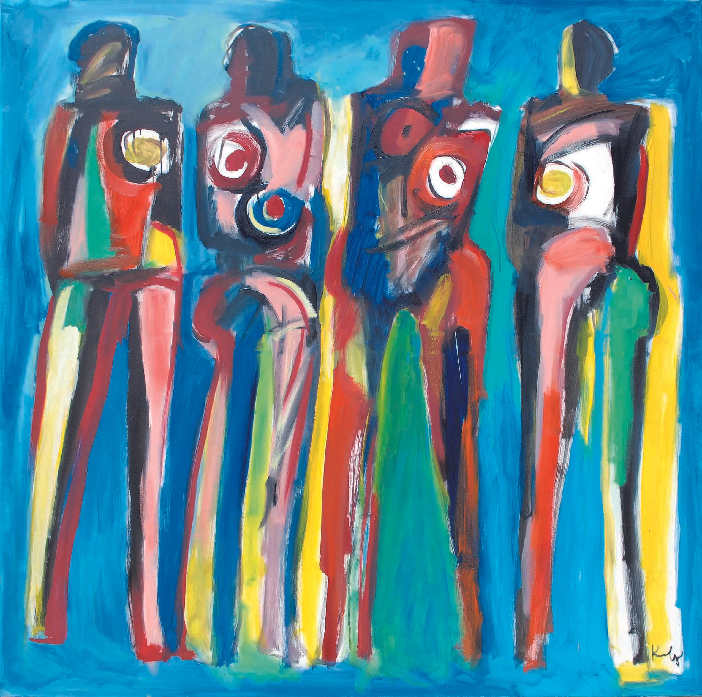 Bild: Alfred Kornberger; Vier bunte Akte; 1994; Öl auf Leinwand; 121 x 121 cm; WV-Nr. 0798